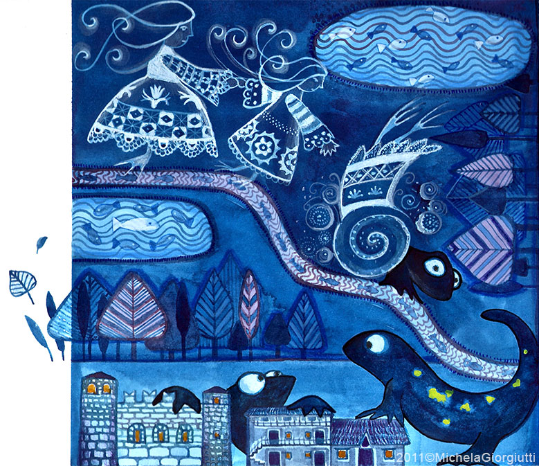 Agane 2.2 2011 acquerello, chine e matite colorate Illustrazione realizzata per la mostra E disevin che in che Cjase