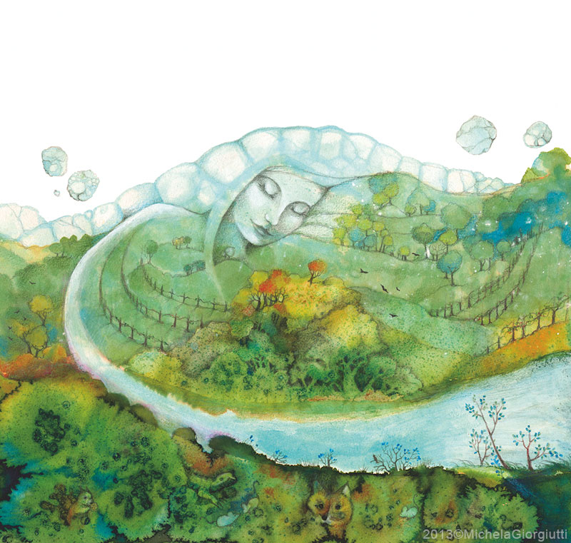 Nonna Bice Racconta 2.2 2013 acquerello e matite colorate Illustrazione per la fiaba Refolino e la storia del Carso Collio, in Nonna Bice Racconta di G. Donzella – S. Tri, Ediz. A voce bassa, 2013